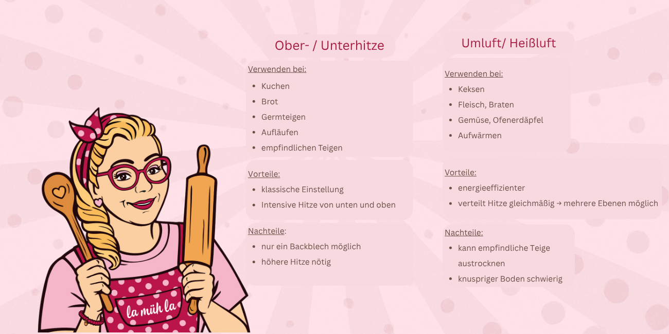 Vorteile: energieeffizienter verteilt Hitze gleichmäßig → mehrere Ebenen möglich