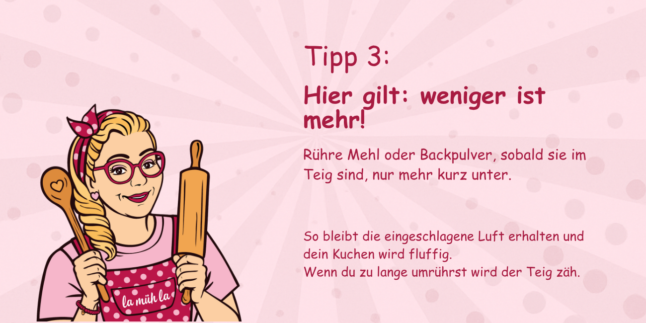 So bleibt die eingeschlagene Luft erhalten und dein Kuchen wird fluffig.